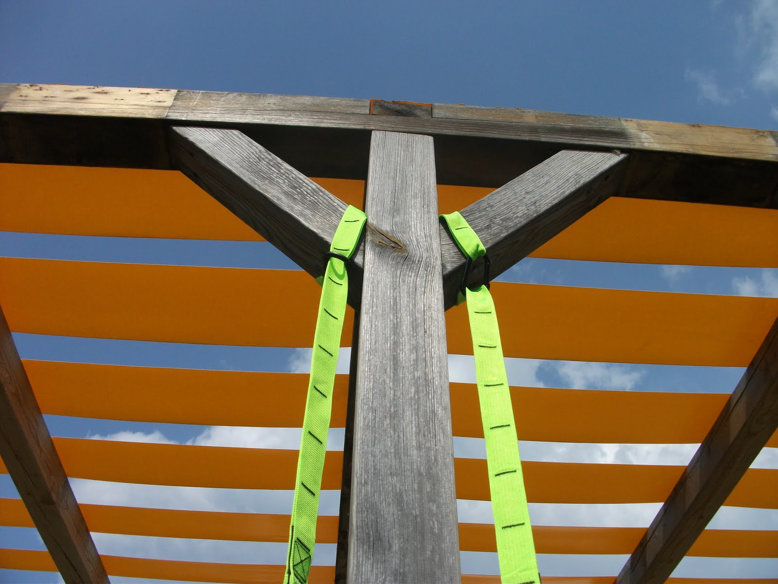 As a matter of fact, I even built my own suspension trainer. After some prototypes I came up with a solution that is equivalent to a TRX but cost me only about €40,-. That’s a pretty good price when compared to the TRX (check prices), the Variosling (check prices) and the like. Coming from a technical education, I decided it’s always good to have a benchmark, so I bought a pair of PerformTex Training Straps to have a „professional“ solution to evaluate my DIY(do-it-yourself)-Suspension trainer against. Only when I opened the package I realized that the PerformTex straps are – just as the name implies – individual straps rather than a single line running through a bail. The whole thing looks something like this: