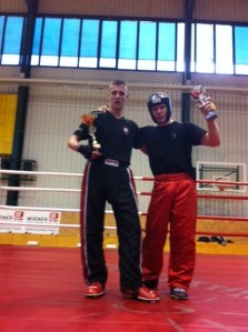 I have to admit I didn’t see everything, because I had to prepare for my bouts just as the boys were fighting. However, a single look onto the mat was enough to clearly realize the situation. Gabriel implemented just about everything I’ve taught him over the course of the last weeks and months. Andreas out-boxed his opponent (who was physically inferior to Andy in every aspect) and won his fight by TKO in the first round.