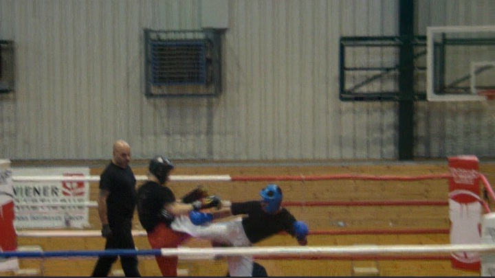 Having said that Alfredo did a brilliant job with that sidekick, I have to add that during the second round, he sometimes got dirty. Started grabbing my kicking leg. On one occasion, he held on to my leg after I had thrown a kick, and hit my damaged rib with a hook. Sent me straight down to the canvas. That’s fine in MMA competitions and maybe muay thai, but illegal in kickboxing. On the other side, I hit Alfredo in the back of the head when he was turning away from me, which is illegal, too. Also, one of my roundhouse kicks was too low and hit him in the crotch. So, we both commited fouls and none of us has a right to complain.