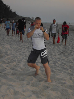 For a strong finish, I hit the beach again after sunset for 10 rounds of shadow-sparring. It’s been a while since I did this, so in the beginning, I had some trouble finding my rythm. Around the third round however, things started to improve. At the end of the 10th, it was just like always. Well, not exactly – everything was so much harder than it usually is, but then that was just due to the sand. Same thing as with running.