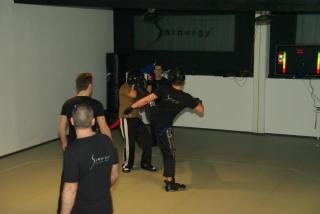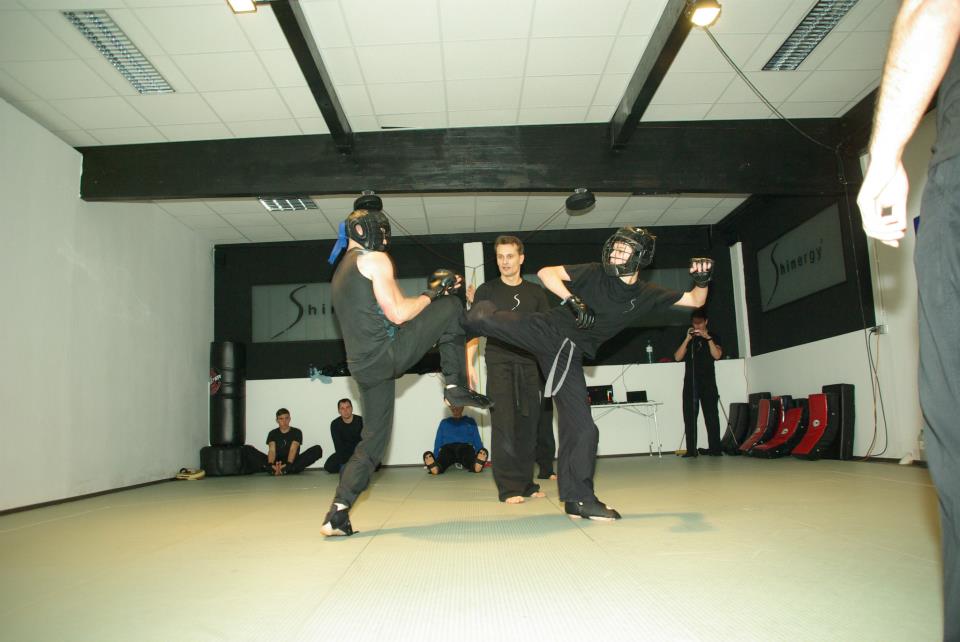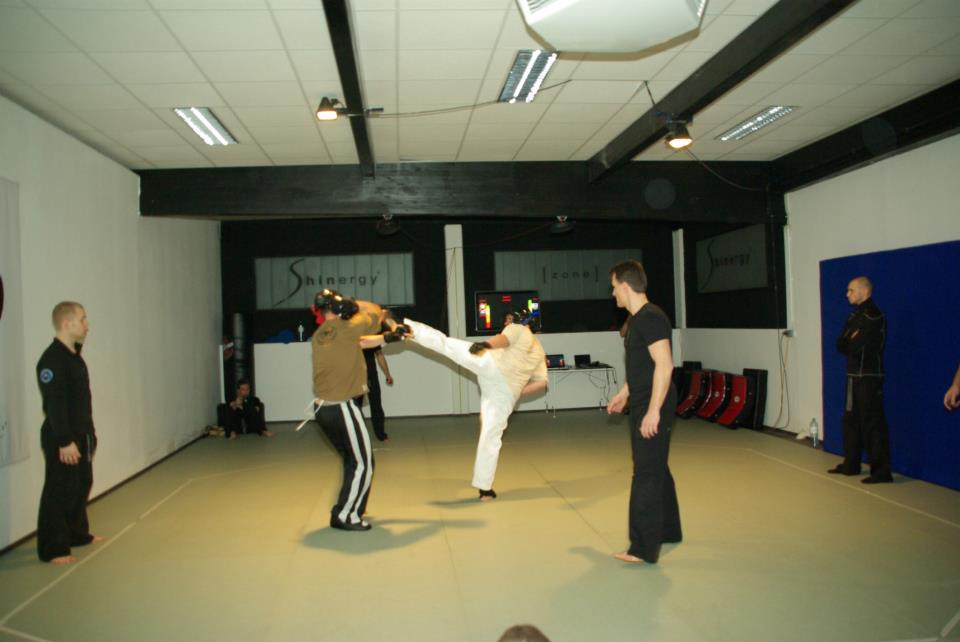 As for the adults division, there were competitors from four Shinergy schools: [Shinergy[zone vienna]], [Shinergy[amstetten]], [Shinergy[schoenbrunn]] and of course [Shinergy[stadlau]]. I’m both proud and sad to say that with three fighters, my school was represented by the biggest team. Obviously, I’m proud because I see Shinergy as a martial art first and foremost, with any philosophical attachments coming second. Implementing the principles of a warrior philosophy just makes less sense for someone who’s not, well, a warrior. Now don’t get me wrong – I’m not implying that non-fighters can’t benefit from martial arts practice. The benefits that can be reaped from practicing a martial art are many and quite diversified. Not going to cover that ground here, though – after all, if you’re reading this you’re probably involved in the martial arts anyhow and therefore well aware of what they can do for you. All I’m saying is that certain aspects – especially everything linked to Zen, i.e. the idea of Mushin, the empty mind – are easier to comprehend in the right context. Preaching an inner calm in times of highest stress is one thing, actually entering a fight and staying focussed right on the task despite being anxious and nervous is a whole ’nother animal. I digress, though…