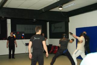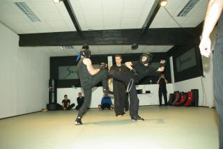 Michael, being the most experienced fighter on the team, faced Tino, who is a part of the Shinergy[supreme team] in his first fight. Now those guys know each other pretty well – it was their fourth fight and they match up pretty well. On that day, before the fights, Michael told me he was pretty sick and really had a hard time warming up properly. This became apparent during the fight, too. Tino just scored better points and won. Since we did a [double elimination tournament], things weren’t over for Michael, though. Since Andreas couldn’t go on and fight another match, we put Frank, who’s also a member of the Shinergy[supreme team], into the loser bracket to fight Michael. Now this bout was an organisatorical desaster, as the judges just scored plain wrong – they awarded Frank a point whenever Michael scored and vice versa. So although Frank clearly took the first round, it was given to Michael. This triggered some serious discussion amongst the officials (and coaches), so the fighters had a longer break. After that break, Michael clearly dominated the second round and won by points. To make good on the judge’s mistakes, Frank was offered another round, one that would ultimately decide the bout. However, since he was hit in the groin somewhere along the second round, he refused and chose to accept defeat. This took Michael to the finals where he was to face… Tino. At that point, both fighters were pretty beat up and neither was really ready to fight another match. Hence, they decided to decide the finals in a semi-contact bout: the fighter who first scores five points would be declared the winner. Since the whole event had already taken quite a lot of time, everyone decided on that mode and the boys went to work. After a while, Michael led three to one, but in the end, Tino won five to three. Quite frankly, I’m not entirely ok with that result, but I’ll post a more detailled comment on the fight as soon as I get some video footage.