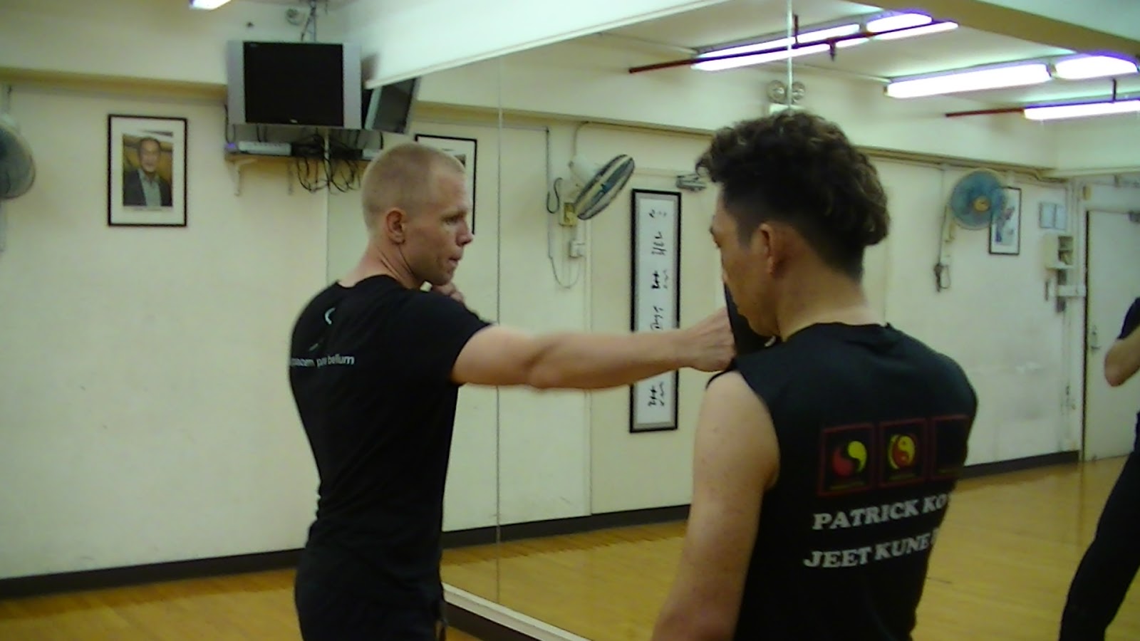 Anyhow, one of the most notable fusion of east and west in a martial arts context, in my opinion, is [Bruce Lee’s] [Jeet Kune Do] (BJJ practitioners might take issue with that point of view… I just don’t know is BJJ’s philosophical foundations are as strong as those of JKD). I guess that apart from San Francisco, Hong Kong is probably the best place to learn some authentic JKD. After some google recherche, I found [Sifu Patrick Ko’s JKD school]. Sifu Ko is a direct student of [Ted Wong], so it’s really just two steps away from Bruce’s original teachings.